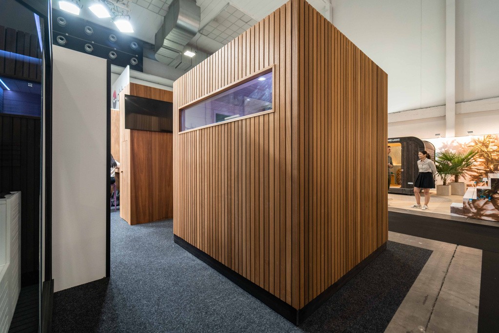 Als trots lid van Sauna From Finland, pakt Alpha Wellness Sensations op Batibouw uit met een speciale ‘Finland Sauna’. Bij Alpha Wellness Sensations zijn de Finse tradities doorgedrongen tot in de kleinste details.  Wie zegt Finland zegt sauna en wie zegt sauna zegt Finland. Wist je dat centraal Finland de ‘Official Sauna Region of the World’ is? Sauna From Finland is een Finse sauna-expertisevereniging en bedrijfsnetwerk met een missie om de beste sauna-ervaringen ter wereld te creëren. Alpha Wellness Sensations is een van de exclusieve leden van buiten Finland. Een erkenning om trots op te zijn. Genoeg redenen dus om de Finse sauna-gebruiken met deze op maat gemaakte Outdoor Chaleur, in de kijker te zetten. Zo werd de Finse vlag op de achterwand van de sauna gesymboliseerd door gebruik te maken van kleuring met natuurlijk olie. De kachel is houtgestookt en onder de bank werd er vernuftig plaats voorzien om hout te stockeren voor een authentieke saunabeleving. Ook de opgietemmer vindt hier zijn plaatsje. Dit model van sauna heeft veel plaats in de hoogte, dus de banken zijn ook wat hoger geplaatst, makkelijk te bereiken via de brede treden. Een horizontaal lang smal venster geeft je een mooi uitzicht op de omgeving maar houdt inkijk tegen. Binnen- en buitenkant werden gemaakt uit ayoushout, dat telkens op een verschillende manier werd behandeld en afgewerkt. Zo zijn de ligvlakken van de banken ook gekleurd met natuurlijke oliën en wordt er afgewisseld tussen brede planken en dunnen latjes. Deze eyecatcher op de Belgische Batibouwbeurs laat de bezoekers kennis maken met de originele Finse sauna. Hij maakte op zijn beurt ook promotie voor het Wereld Sauna Forum dat op 7 juni 2022 in Tampere - bekend als de saunahoofdstad van de wereld - georganiseerd werd. Deze prachtige realisatie laat eens te meer zien hoezeer Alpha Wellness Sensations doordrongen is van de authentieke Finse saunatradities.