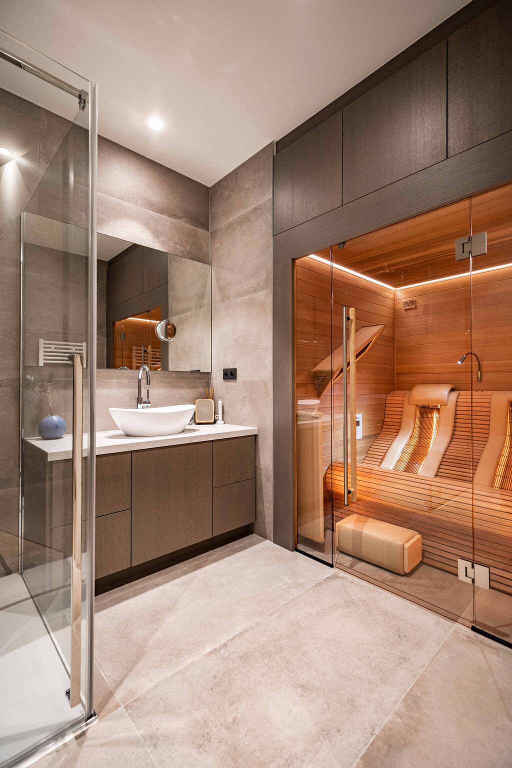 Dat je voor wellness thuis altijd veel ruimte nodig hebt is absoluut niet waar. Dat bewijst Alpha Wellness Sensations met deze knappe integratie van een infraroodcabine in een badkamer van een privéwoning.