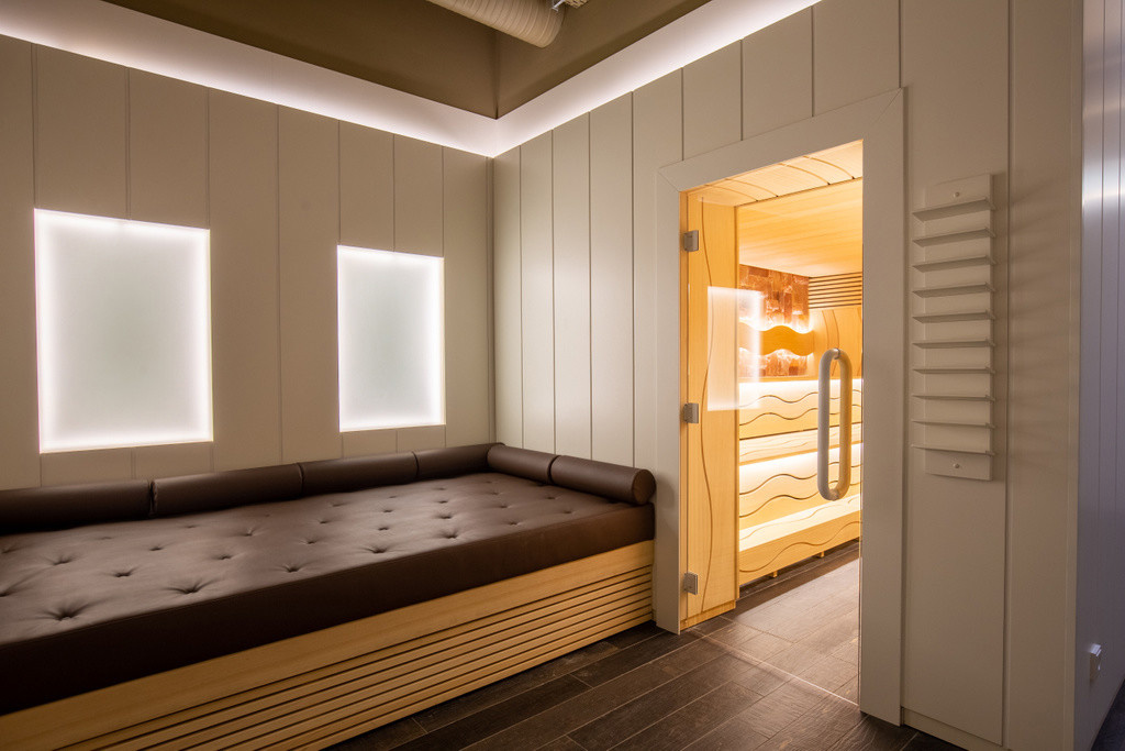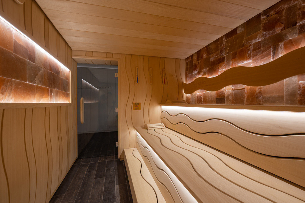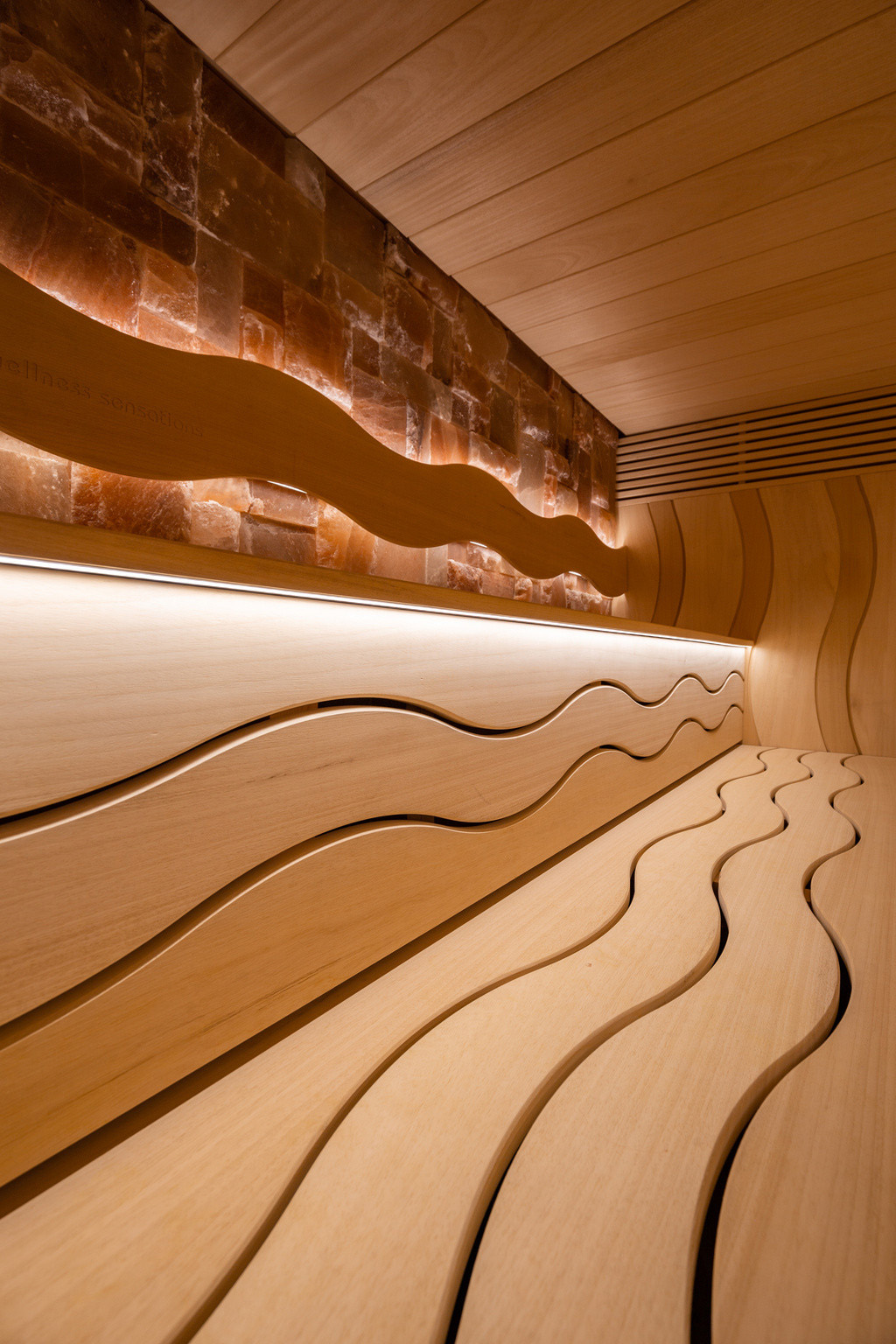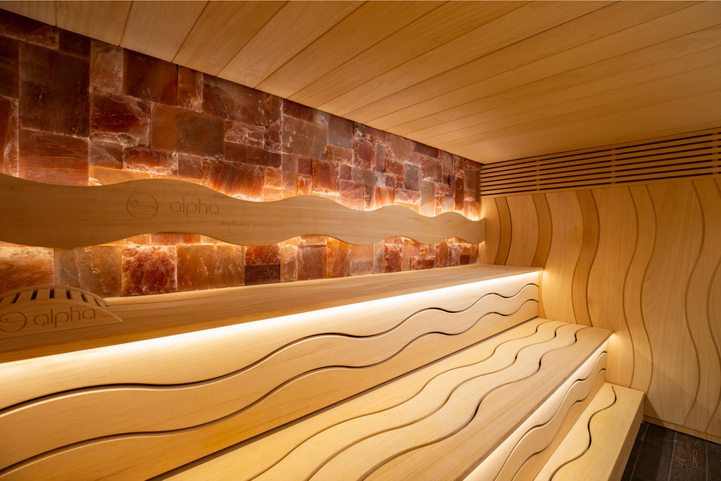 De familie Fräse is niet aan haar proefstuk toe in de hospitality wereld. Ruim 10 jaar geleden renoveerden ze al het “Fleesensee Resort & Spa hotel”. Een wellness- en fitnessruimte werd toegevoegd aan het bestaande hotel-aanbod en enkele kamers werden omgetoverd tot heuse Wellness Suites. Tot vandaag de dag zijn de sauna’s in het hotel nog steeds in topconditie. Niet verwonderlijk klopten de eigenaars van dit familiebedrijf, Suzanne en Rainer samen met hun dochter Lena, opnieuw aan bij Alpha Wellness Sensations. Ook het fonkelnieuwe in Hannover gelegen “Sport & Spa” complex moest worden voorzien van het beste wat er te vinden was op gebied van wellness- & saunabouw. Maar het wellness aanbod moest tevens ook ware belevenis voor de gasten vormen. Een extra motivatie om stevig te sporten en daarna ten volle te kunnen genieten van een deugddoende wellness sessie was de basisgedachte bij de creatie van dit complex. Bij een bezoek aan de showroom te Hasselt viel hun oog dadelijk op de Venus sauna met 3D gevormde achterwand in ayous hout, ook Afrikaans vurenhout geheten. De “Crème de la Crème” in de hedendaagse saunabouw. Voor Rainer en zijn familie was alleen “das Besten von Besten” goed genoeg voor de Finse Sauna. Voor de inrichting van de Bio-Sauna werd er fineer “kernhout” uitgekozen. Dit fineerhout wordt speciaal ontwikkeld met uitsluitend natuurlijke componenten voor gebruik in de sauna. Het centrum moest ook beschikken over een “Womens Only Sauna”. Suzanne en Lena vielen bij de keuze voor deze zoutsauna voor de glooiende lijnen die zijn verwerkt in de ayous houten “Wave” banken. De sauna een krijgt hierdoor een vrouwelijke touch. Muren opgebouwd in zoutsteen, een automatische opgiet systeem en een zoutverdamper maken van deze “Wave Sauna” een heerlijke plek om te genieten na een stevige work-out of een deugddoende yoga sessie.