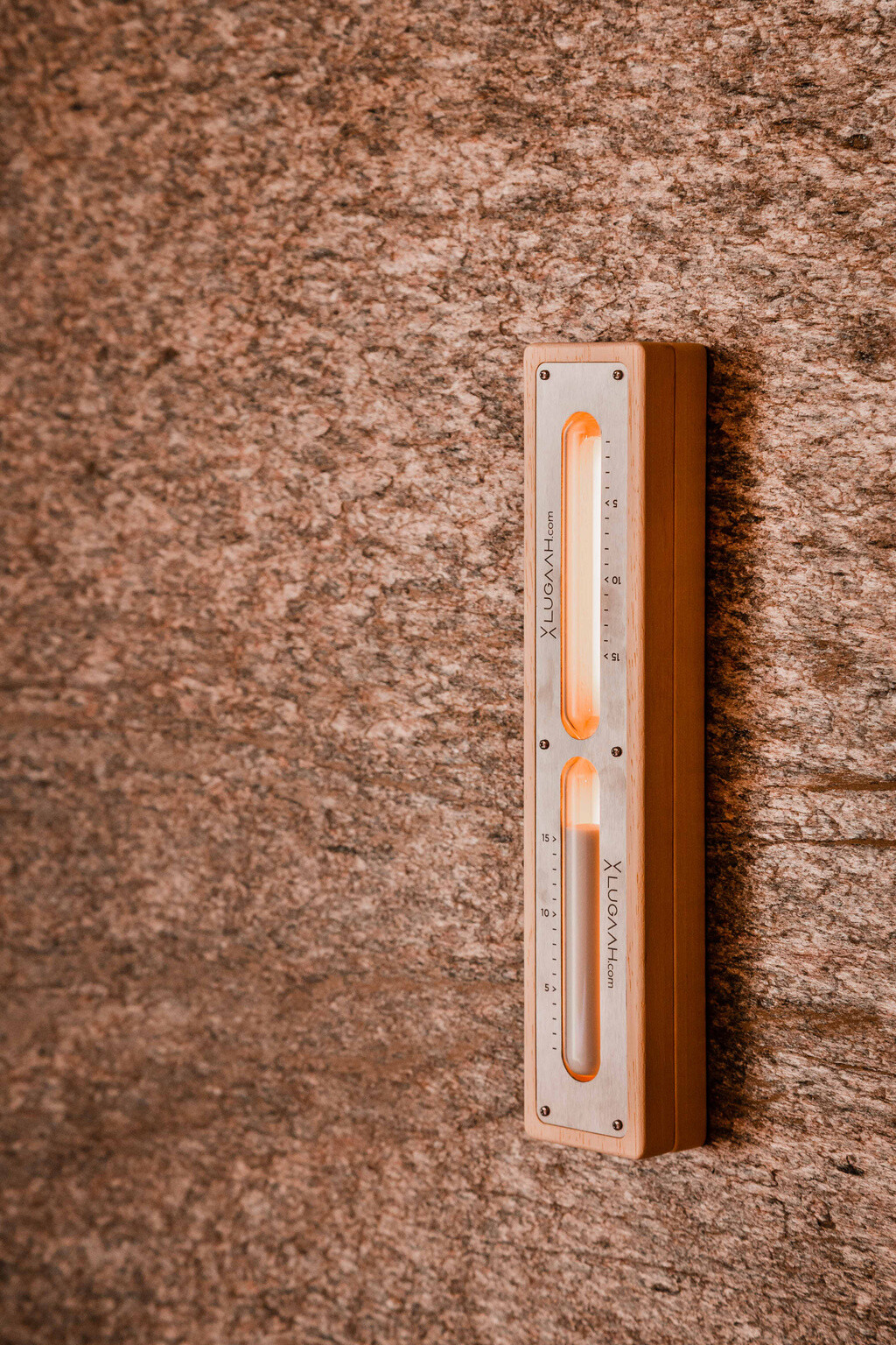 Specifiek aan deze sauna is de mooie inwerking van de saunaoven. De wanden boven en langs de oven, evenals de omkadering van de oven zelf, zijn uit stenen fineerplaten. Deze combinatie van steen en hout brengt ons terug bij de oorsprong van de elementen. Indirecte verlichting in de neus van de banken - en zelfs in de tijdszandloper - geeft een moderne touch aan het geheel. De krachtige oven warmte de grote sauna in een mum van tijd op zodat er op elk moment snel van kan genoten worden. Klasse en kwaliteit waar de veeleisende eigenaar meer dan tevreden over was.