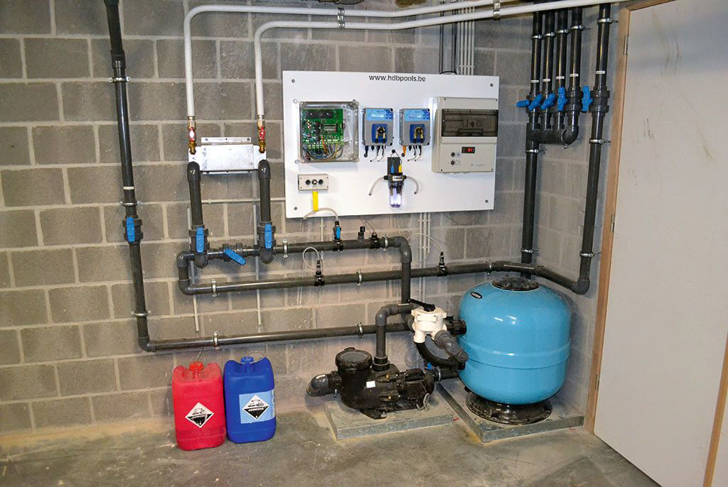Om zo lang mogelijk te genieten van het ultieme vakantiegevoel dat een zwembad opwekt, werd een Platen wisselaar aangesloten op de verwarming van de woning. De zuiverheid van het water wordt gegarandeerd door een Lacron zandfilter met Hayward pomp. De ontsmetting gebeurt automatisch dankzij de Pool-Basic van Seko. Maar zeker zo belangrijk als de keuze van de merken, is de zorg waarmee HDB Pools al deze toestellen installeert. De technische ruimte van een HDB Pools zwembad herken je aan de gebruiksvriendelijke afwerking tot in de kleinste details. Alle buizen staan perfect parallel, de kranen staan op dezelfde hoogte, de sturingskast wordt op maat gemaakt… Een technische installatie van HDB Pools behoort zonder twijfel tot de beste in zijn soort.
